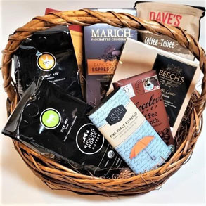 In addition to the pre-made designs on our website, we can custom-craft any gift basket or gift box specifically to your needs, whether created for a family member, friend, client or charity. Business clients can also have us build a gift with their company mug, or other promotional product in it.